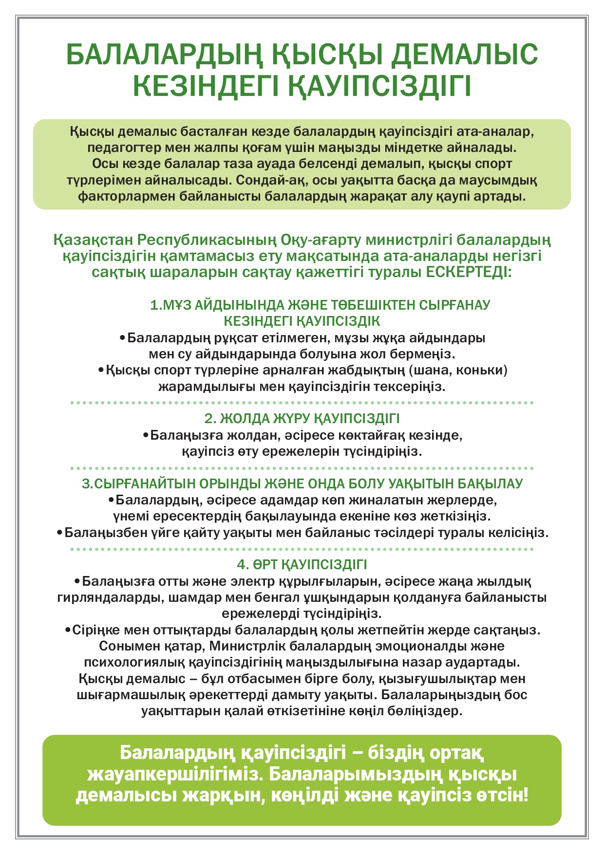 БАЛАЛАРДЫҢ ҚЫСҚЫ ДЕМАЛЫС КЕЗІНДЕГІ ҚАУІПСІЗДІГІ