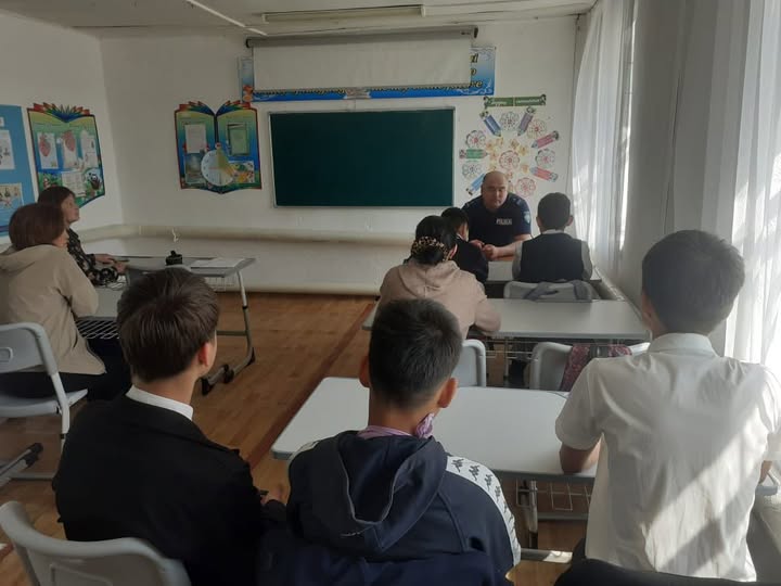 «Полиция-балалардың қорғаны» тақырыбында учаскелік полиция инспекторы Ашкеев А.Н. мектеп оқушыларымен кездесіп, құқық бұзушылықтың алдын алу тақырыбында кездесу өткізді.Және де жазғы демалыста қауіпсіздік ережелерін сақтау туралы ескертілді.