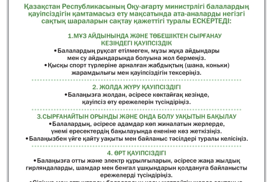 БАЛАЛАРДЫҢ ҚЫСҚЫ ДЕМАЛЫС КЕЗІНДЕГІ ҚАУІПСІЗДІГІ