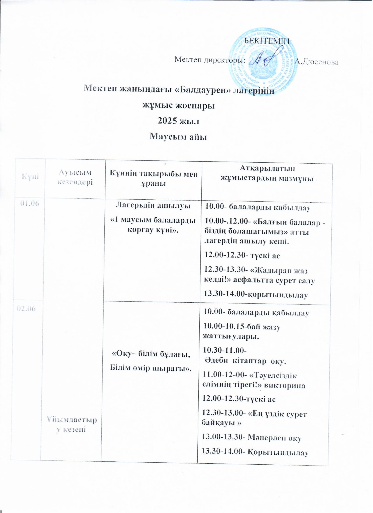 С 1 июня лагерь «Балдаурен» при школе будет работать в Комаровка НСШ.